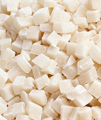 Coconut is a very versatile fruit known for its refreshing taste, minerals, antioxidants and high fibre content. Shimla Hills exports premier quality IQF coconut dices prepared using advanced freezing techniques. Free flowing frozen Coconut dices produced from whole ripe Coconut. The fruit is picked and transported to the processing factory without delay. It is then peeled and removed shredder and passed along the inspection belts to remove any foreign bodies or over/under-ripe shredder. The Sheredder is then diced by Machine to 6mm, 10mm and passed through dewatering and infeed shaker to IQF. The IQF dices are then sieved,inspected and weighed and packed.The packed cartons are fed through metal detector and transferred to cold store at 18oC.